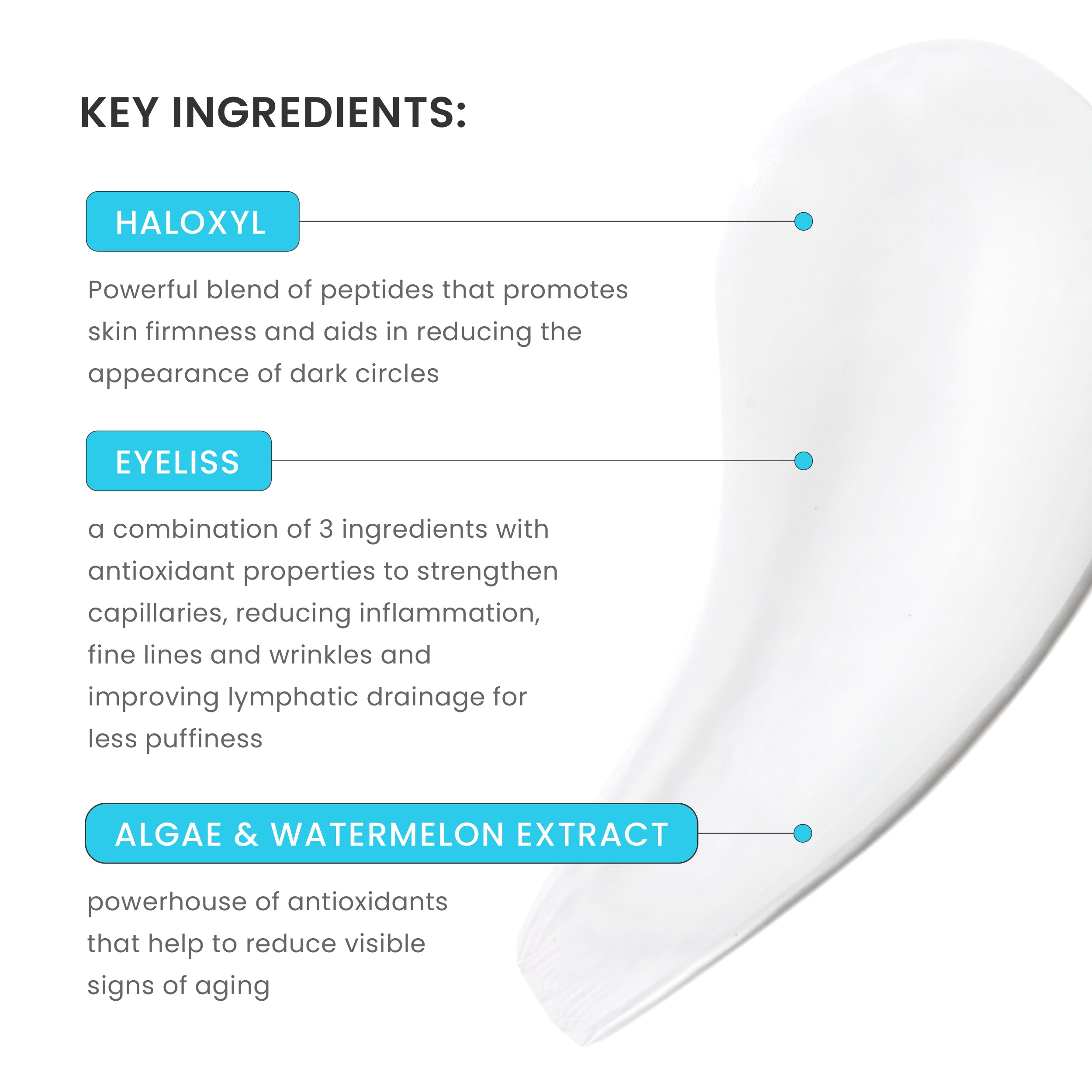 - Visibly improves the appearance of dark circles